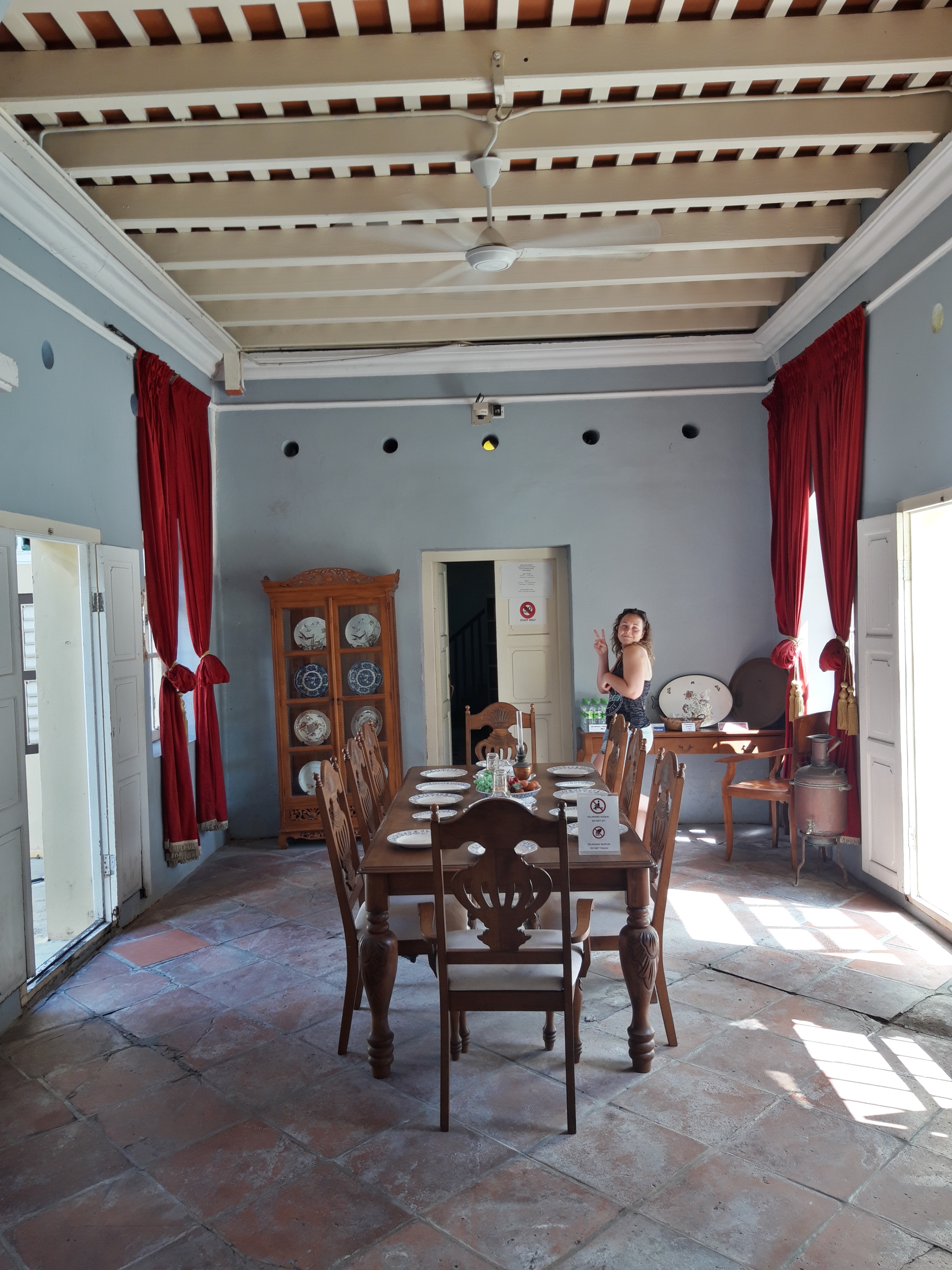 In addition to the Blue Mansion, we also came across this house on our way to the food court near our little hotel. No entrance fee and we were the only ones there. It had mannequins standing around displaying typical Malay clothing, style, jewelry and had lots to read about how people here used to live and how the houses were designed. Quite neat little diy tour.